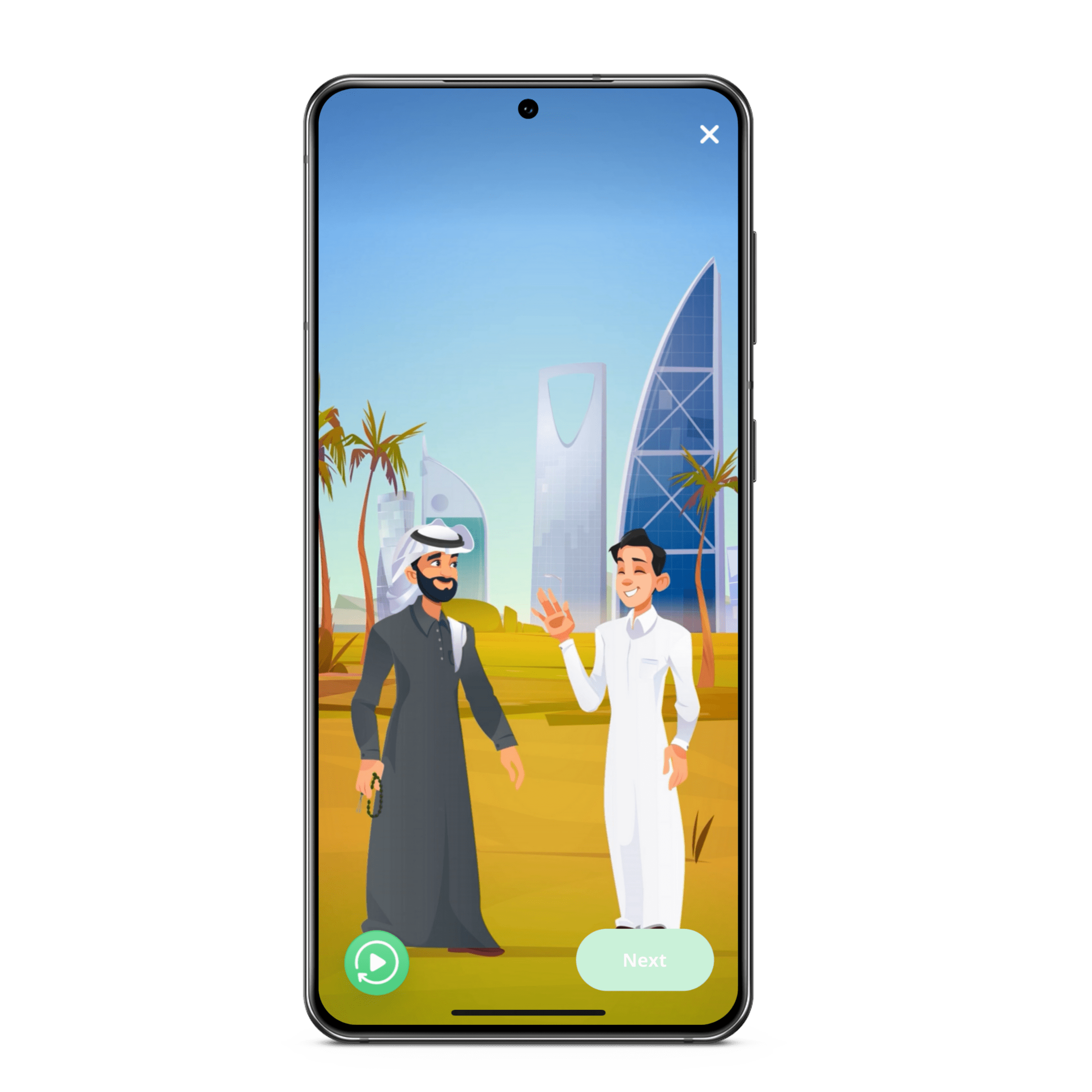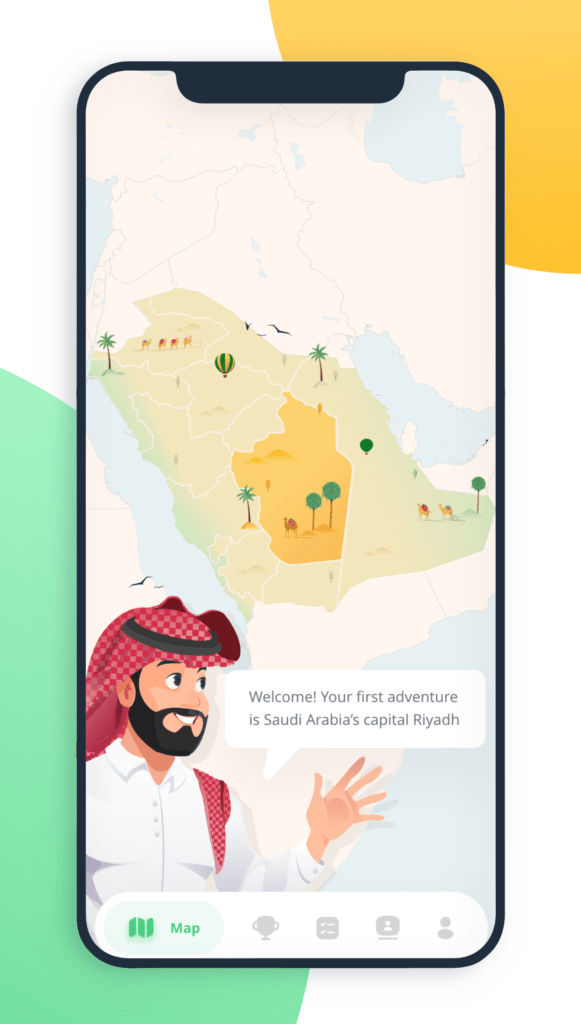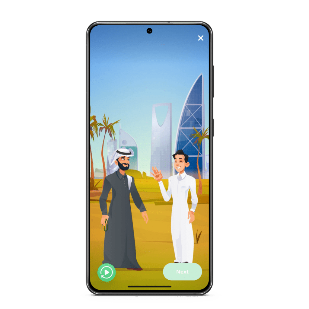 As you go on a journey through KSA, you’ll learn customs and courtesies for navigating life in Saudi. The more levels you complete, the more cultural insights you’ll unlock!