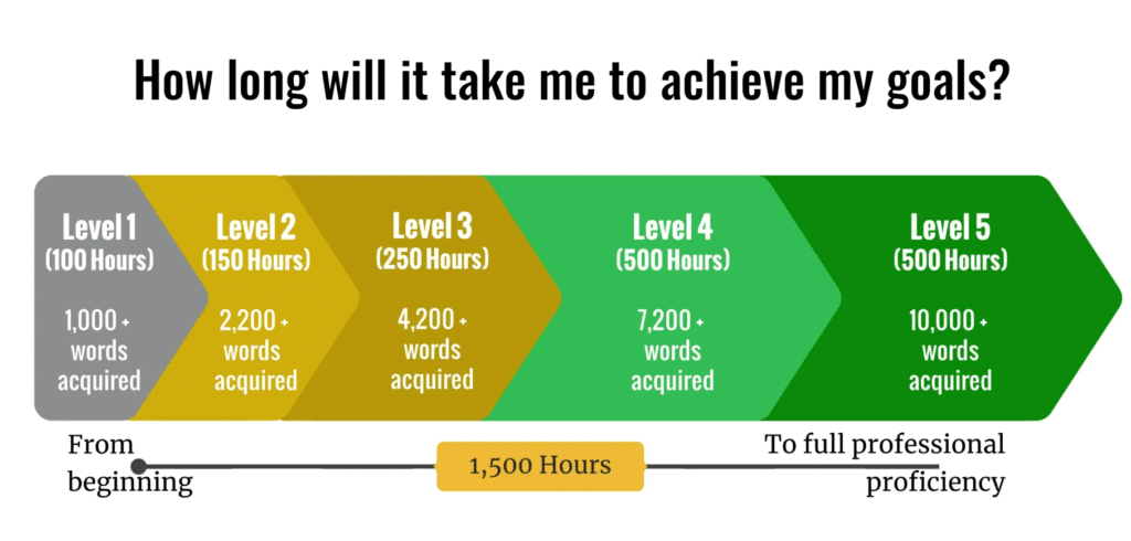 - The intensity of your learning: How much time and effort are you willing to dedicate daily or weekly? Studying for 4 hours a day will yield different results than studying for just a few minutes here and there.